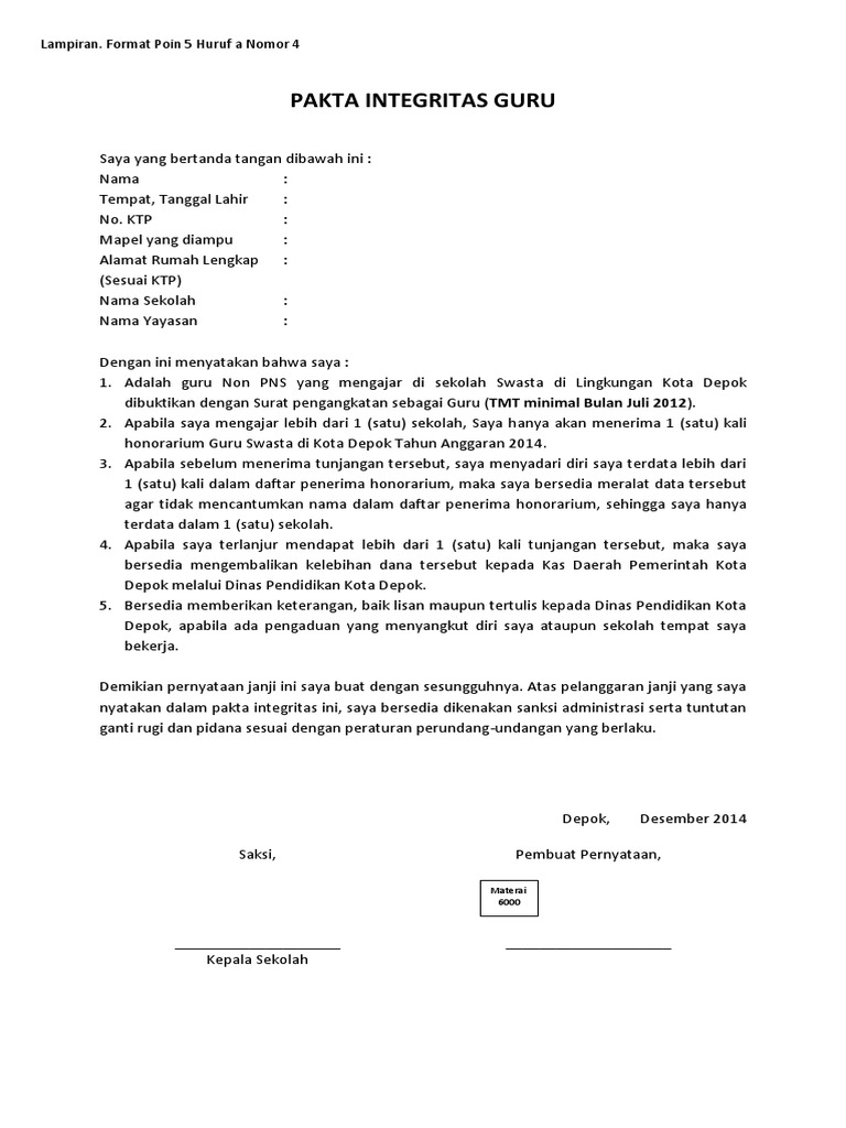 Contoh Surat Pakta Integritas Guru Untuk Kenaikan Pangkat Wawasan Pendidikan Nusantara from 2.bp.blogspot.com Check spelling or type a new query. Maybe you would like to learn more about one of these? We did not find results for: Contoh pakta integritas guru yayasan doc.